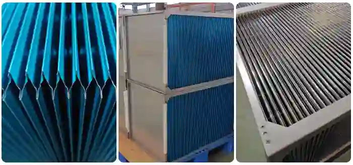 The aluminum foil material thickness of this heat exchanger is usually 0.1-0.15mm. It is scientifically stacking, and the channel height of each layer is about 5-10mm. This heat exchanger has many intersecting channels, with the first layer being the hot air channel and the second layer being the cold air channel. The advantage of this design is to fully utilize the characteristics of aluminum foil, and the heat transfer efficiency can reach 40-65%.